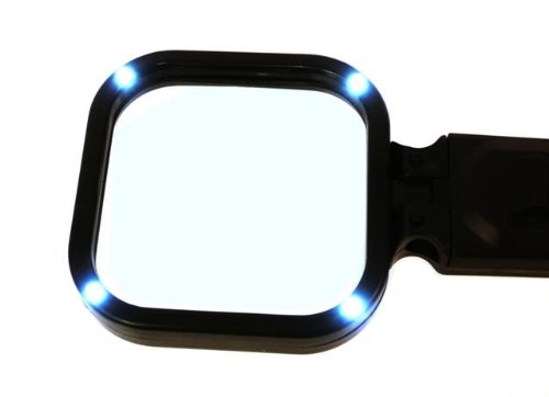 Size 3.25 in. X 3.25 in. Square 2X Magnifier 4 LED Lights Require 4AA Batteries Batteries Not Included